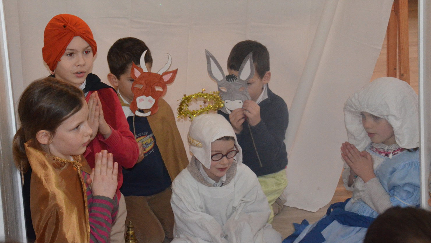 Les enfants interprètent et miment « Le Noël des petits santons ».